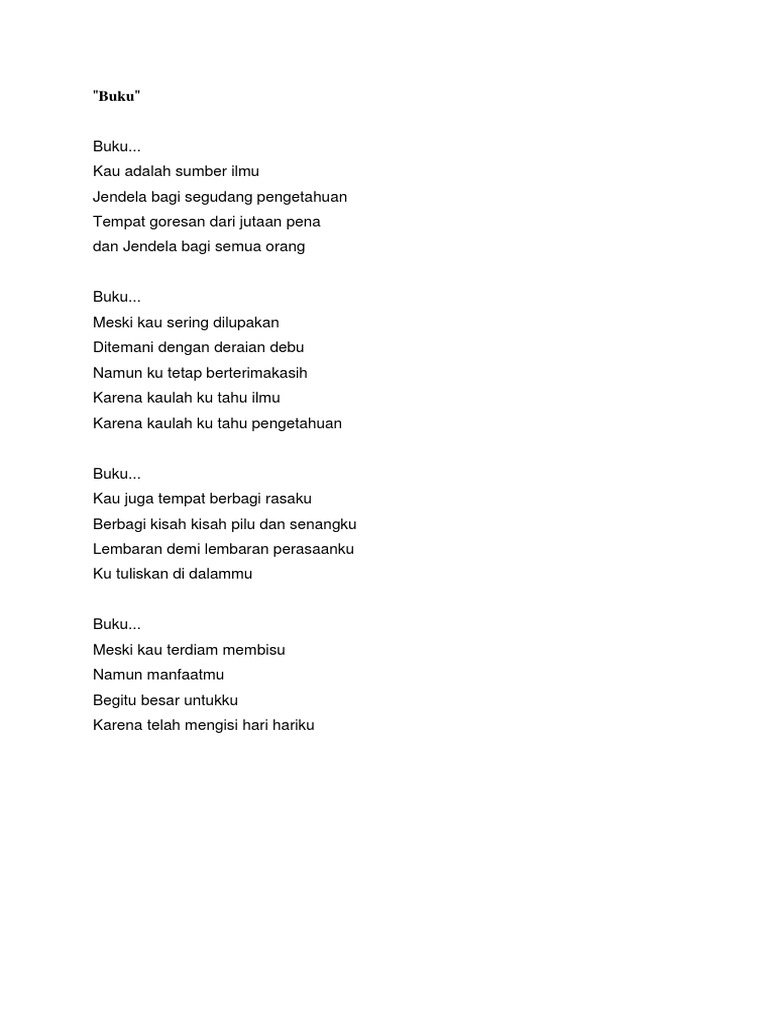 Puisi tentang buku sumber ilmu. We did not find results for: Maybe you would like to learn more about one of these? Check spelling or type a new query.