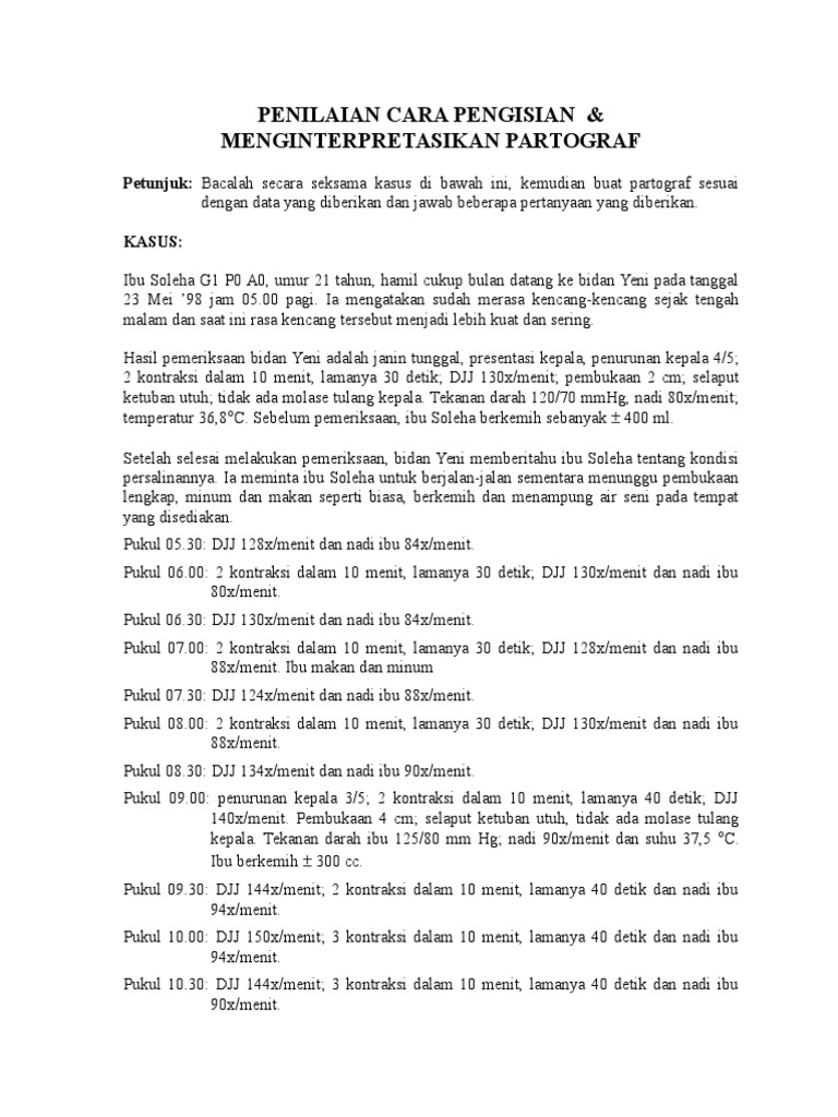 The holy ghost electric show soal partograf persalinan normal. Ibu masuk rumah sakit pada fase persalinan aktif pada pukul 10.00. Contoh soal partograf dan cara mengerjakannya. Video ini di buat setelah melewati siklus koas obgyn niatnya agar bisa berbagi dan juga sebagai pengingat kalau aku lupa jadi bisa aku tonton ulang videonya. Nah gimana hasil belajar mathnya.