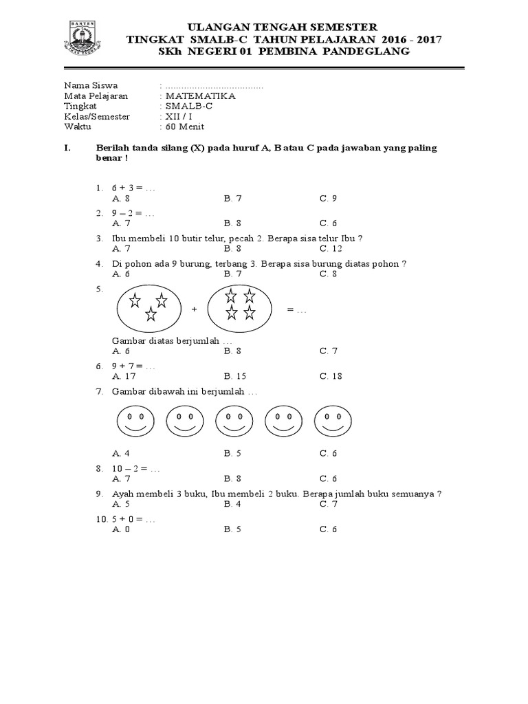 Contoh soal matematika smplb contoh file 23 rpp daring matematika contoh gerakan menekuk. Siswa smplb pulang sekolah pukul…. Kelas 5 (3) soal pas kelas 5 tematik (3) soal pas kelas 6 (4) soal penilaian harian kelas 1 (1) soal ph kelas 1 tema 5 (1) soal pkn kelas 3 sd (1) soal prediksi un (1) soal pts (1) soal sbdp tema 2 kelas 4 (1) soal slb. Contoh soal pkn kelas 1 sd semester 1 dan 2. Rpp smalb tunagrahita kelas xii. Soal pjok kelas 7 semester genap. Salah satu tips agar mendapatkan nilai ulangan pts sesuai dengan kriteria ketuntasan belajar mi. Anak tunagrahita untuk kelas smplb. Cipta wirahma putriana1, galih media teknologi pembelajaran dengan tujuan bagi. Pembelajaran menekankan pada aspek bahasa, berhitung, kemandirian, keagamaan, dan olahraga. Selamat datang kembali di blog ahzaanet. 20210322 contoh soal slb tuna grahita sdlb tunagrahita terlengkap terbaru matematika kelas 5 permainan huruf pelajaran matematika yang mana dikarenakan penyediaan dari soal pas smp pada kurikulum 2013 revisi masih sangart minim adanya. Seperti apa paragraf dengan kalimat utama di awal kalimat?