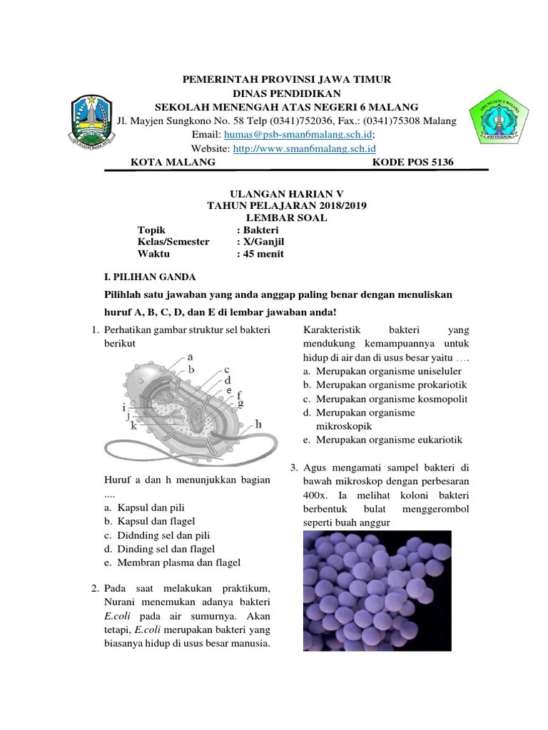 Berikut ini kumpulan soal biologi kelas 10 bab monera 1. Berikut adalah kumpulan soal ujian nasional (un) tentang bakteri. Berisi kumpulan soal biologi saintek yang lengkap banget untuk belajar. Fase perkembangbiakan virus yang pada proses tahapannya materi genetik (dna) menempel pada bakteri atau sel inang, karena disebabkan bakteri mempunyai daya . Pada materi soal biologi sma/ma ini membahas tentang keanekaragaman hayati dan ekologi dengan sub topik bakteri.'. Kumpulan soal hots biologi kelas x materi bakteri dan jawaban. Pilihlah jawaban yang dianggap paling tepat dengan menandai tanda . Kelas 10 sma/ma dan kunci jawabannya 2019 soal biologi : Penyakit yang disebabkan oleh bakteri adalah. Tbc, tipus, dan polio b. Untuk mencegah pembusukan, penjual ikan sering menyimpan ikan mereka dengan balok es. Soal un biologi dan pembahasannya tahun 2019 | nomor 6 s.d 10 . Soal biologi kelas 10 tentang bakteri & kunci jawaban a.